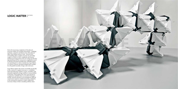 Logic Matter, by Skylar Tibbits, has been included in ‘FABRICATE: Making Digital Architecture,‘ a peer reviewed publication by Riverside Architectural Press and launched at the FABRICATE conference, April 2011.