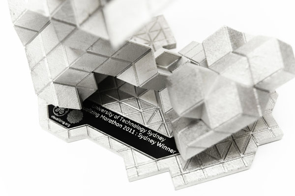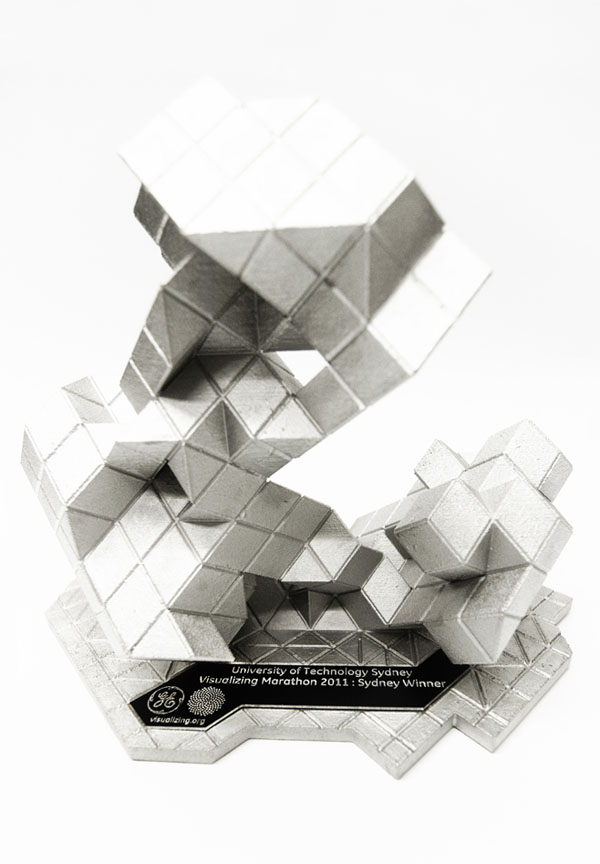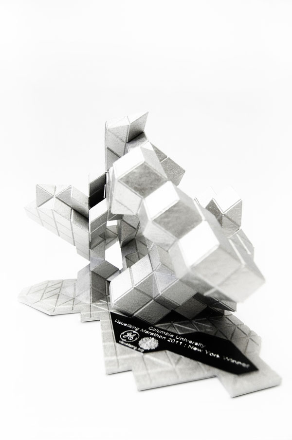 Skylar Tibbits and Jared Laucks have been commissioned to design and produce 5 trophies/design objects for GE and SEED Media Group's Data Visualization Marathons in: Sydney, New York, Sao Paulo, London and Berlin.